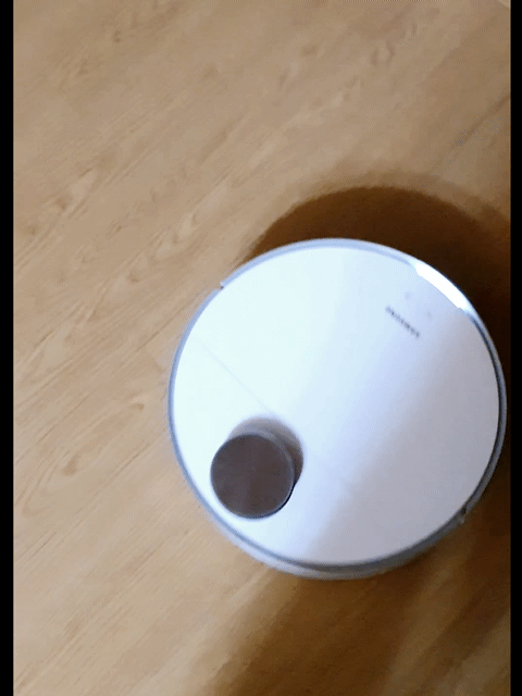 위 움짤은 제가 돌아 다닐 때, 로봇청소기가 멈칫하고 알아서 뒤로 돌아서 가는 모습이에요.