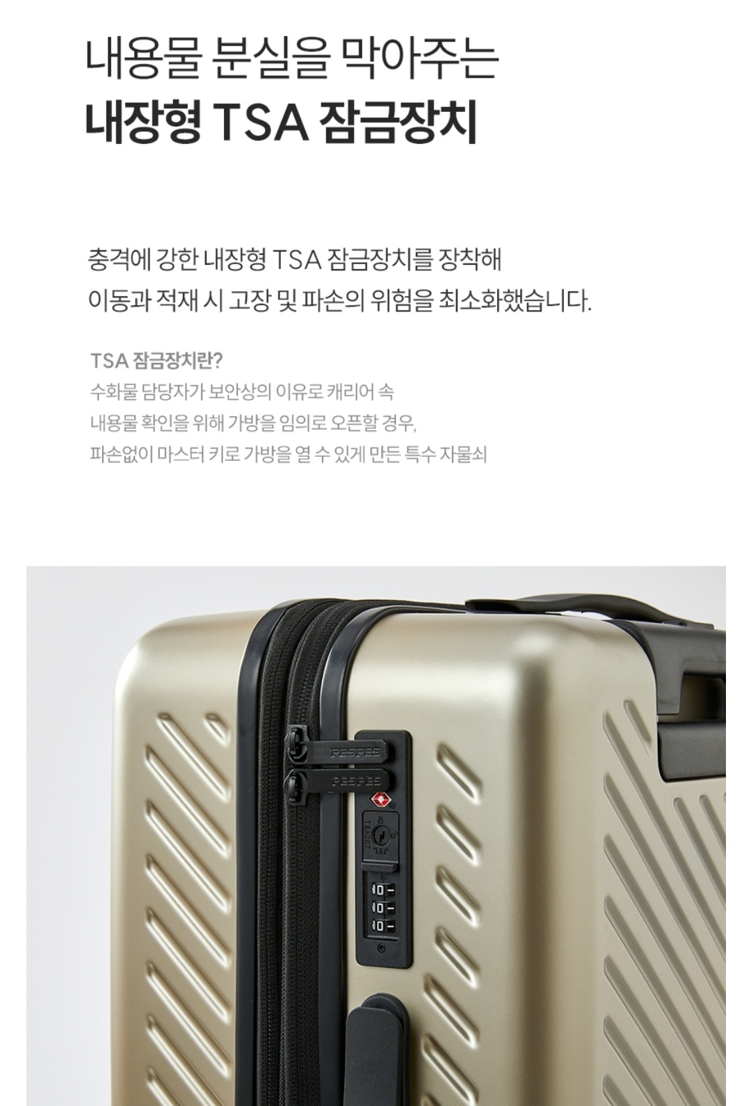 TSA는 미국교통보안국 인증 잠금장치로 공항 수하물 담당자가 보안상 이유로 캐리어를 임의로 오픈할 경우,