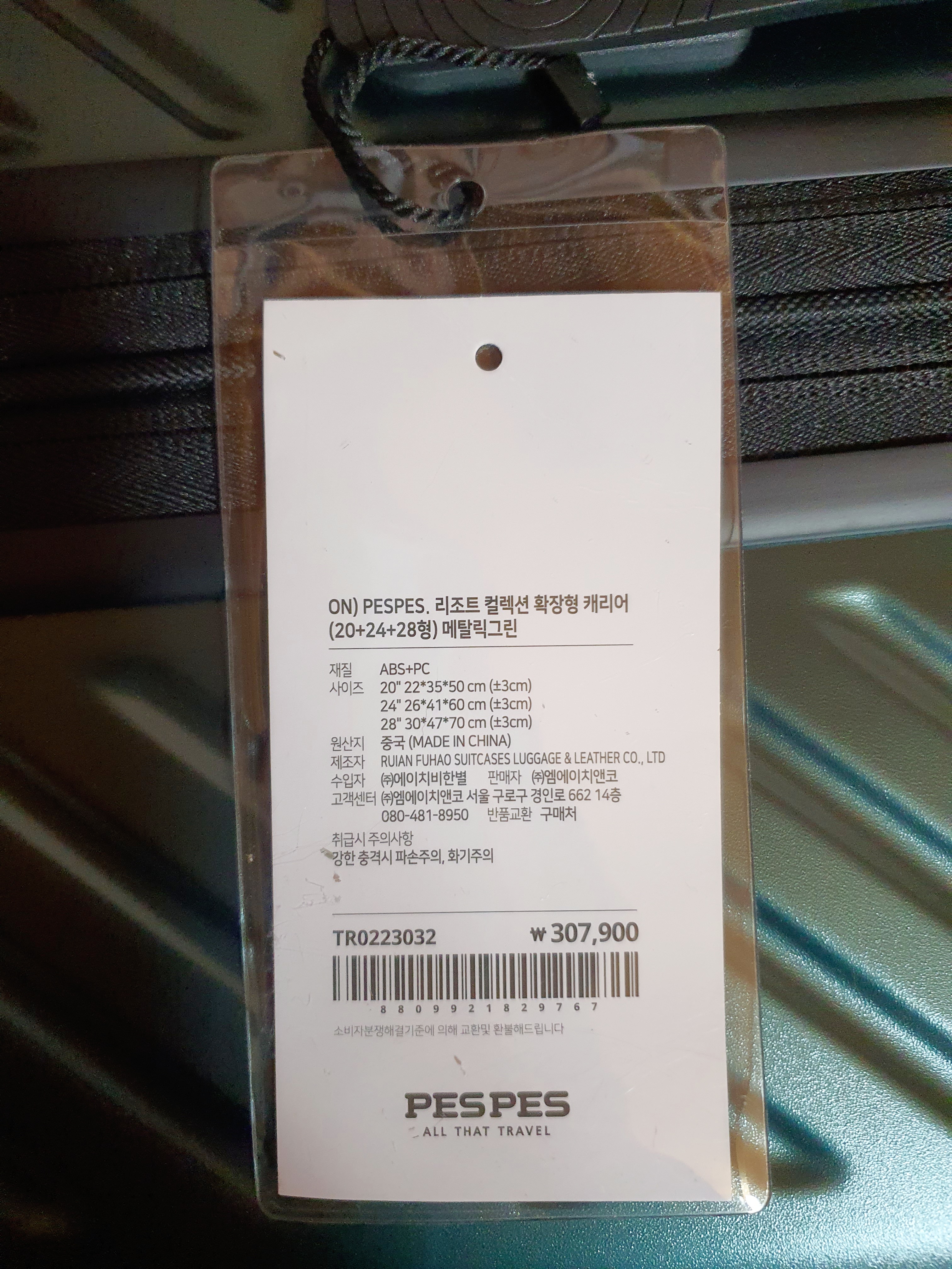 새로 구입한 캐리어에 부착된 스티커에 압축되어 잘 표시되어 있는데요.