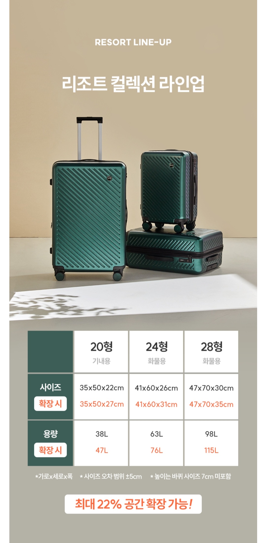 3) 여행용 캐리어 사이즈, 확장형