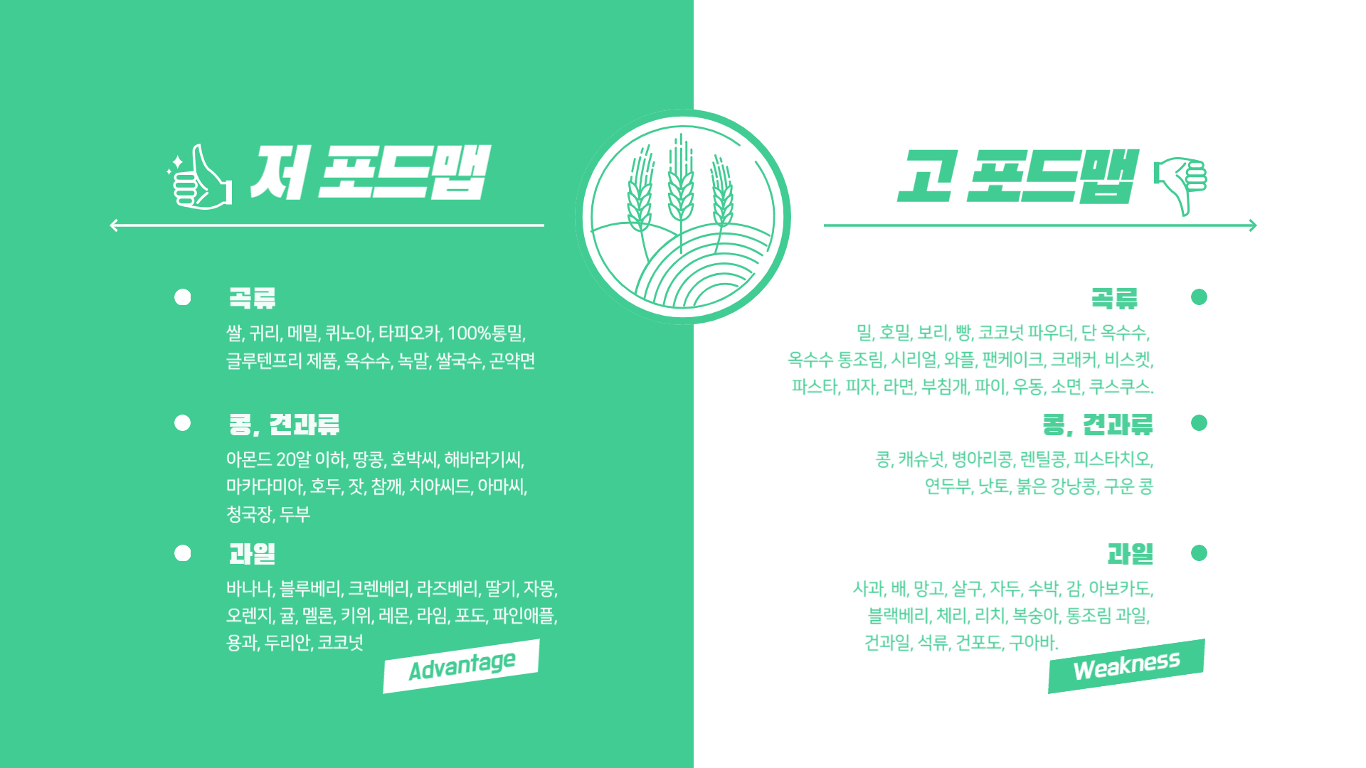 저포드맵 식품과 고포드맵 식품이 어떤 것이 있는지 알고 싶어서