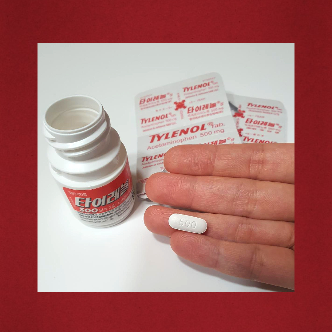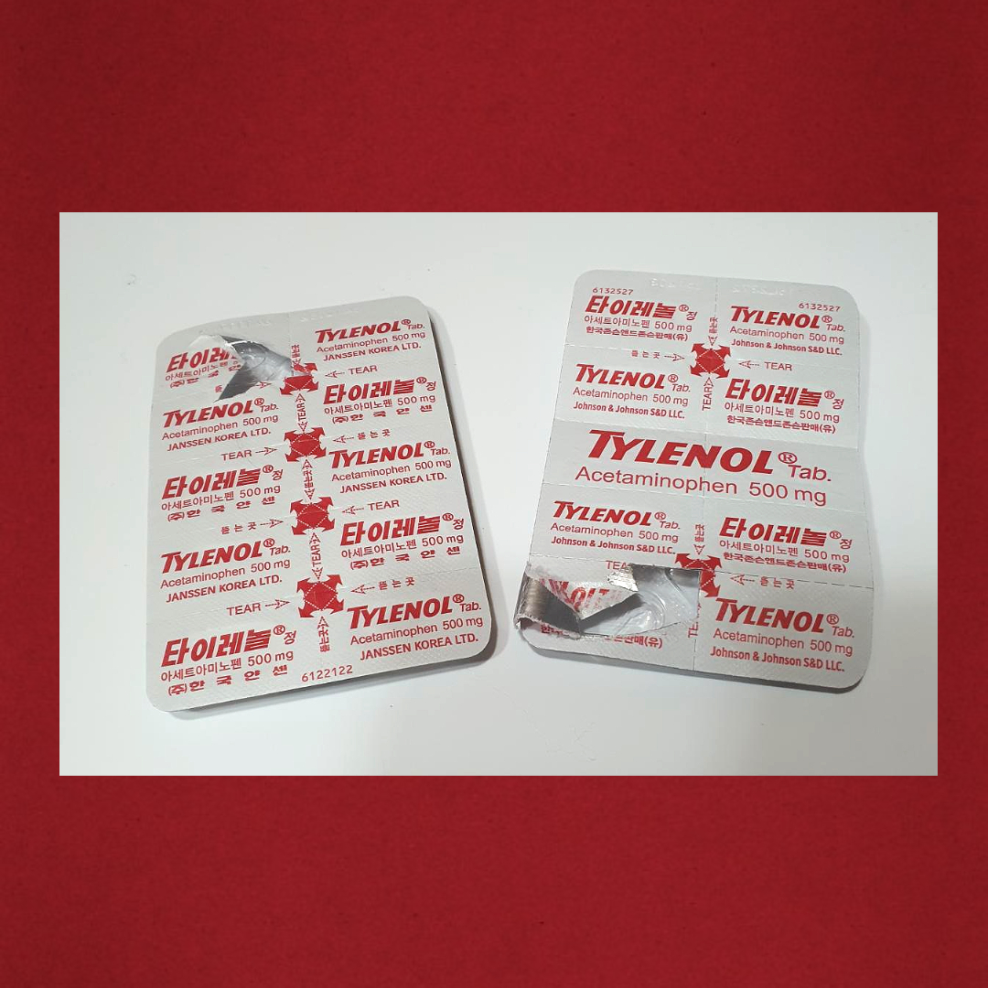 일반적인 타이레놀의 유효성분은 아세트아미노펜으로 알약 1정 중 아세트아미노펜 500mg이 들어있습니다.