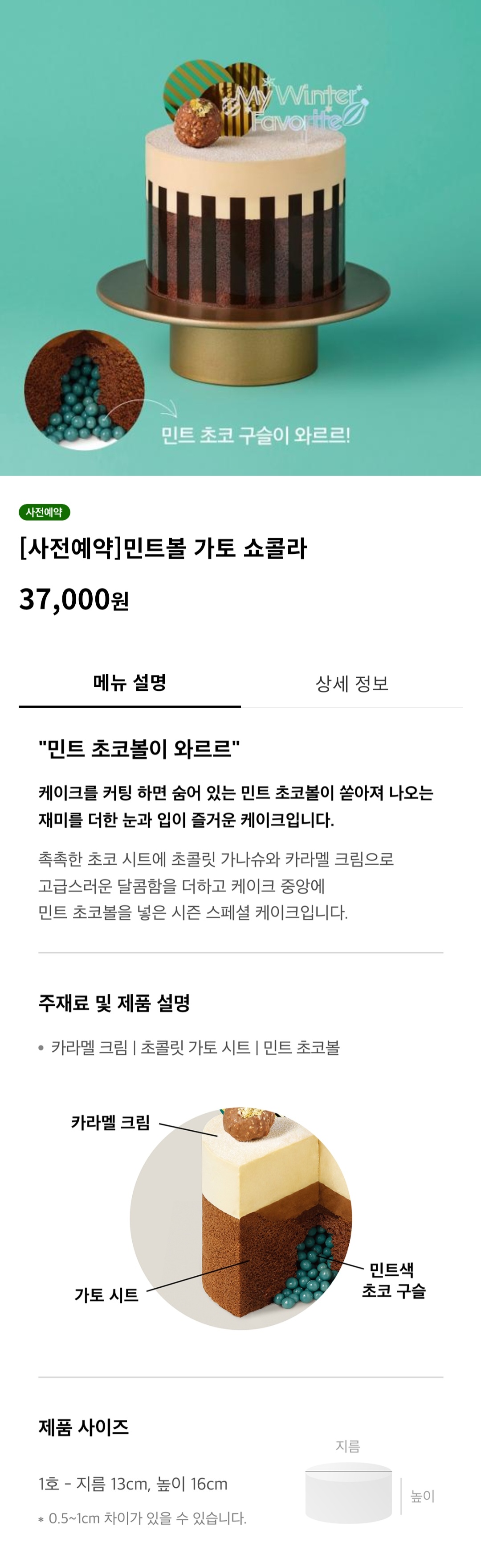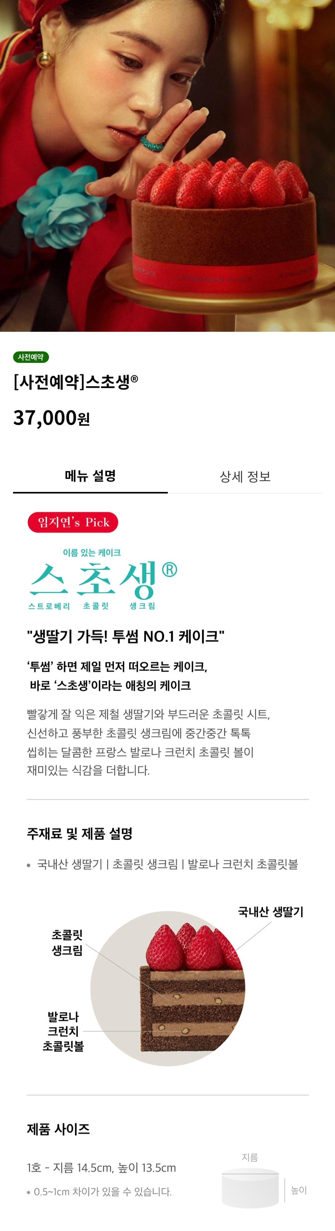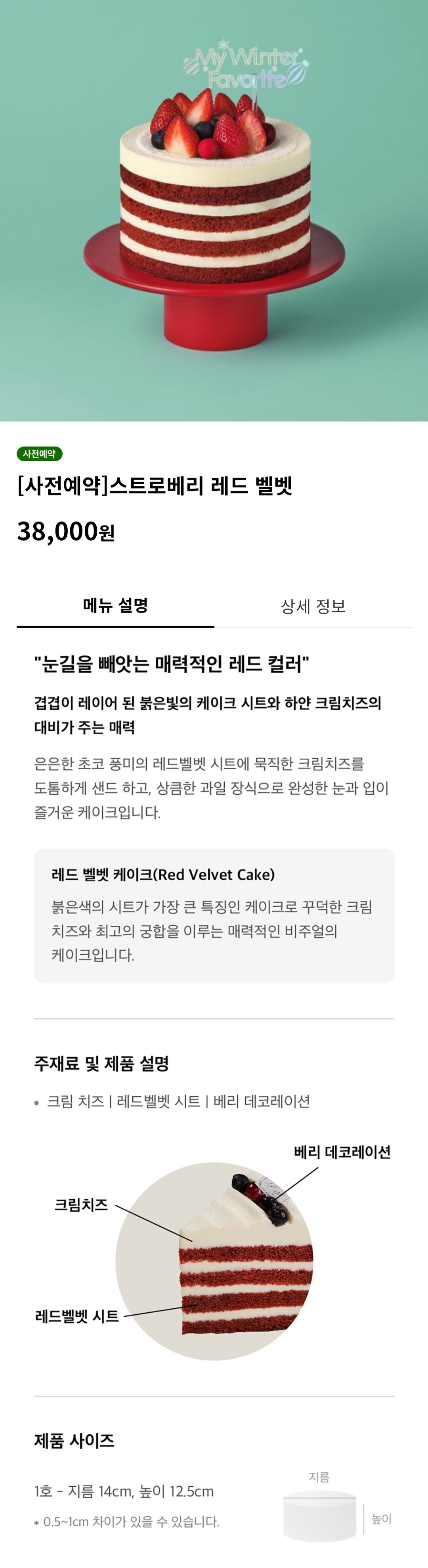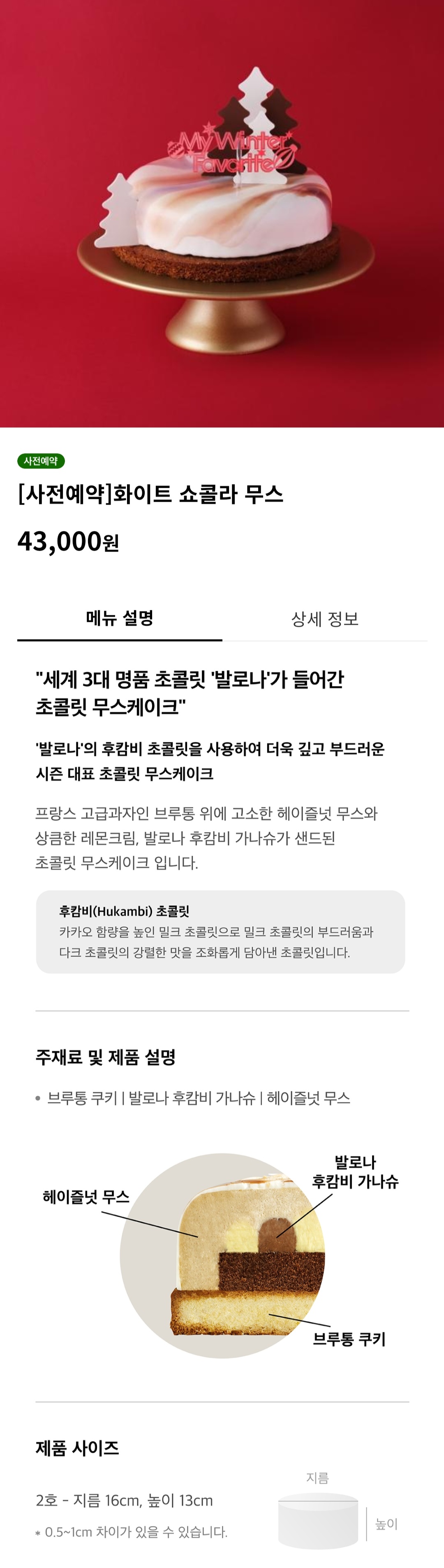 홀케이크 24 메인 화면에서 '사전예약' 배지가 있는 케이크 중에서 원하는 케이크를 고릅니다.