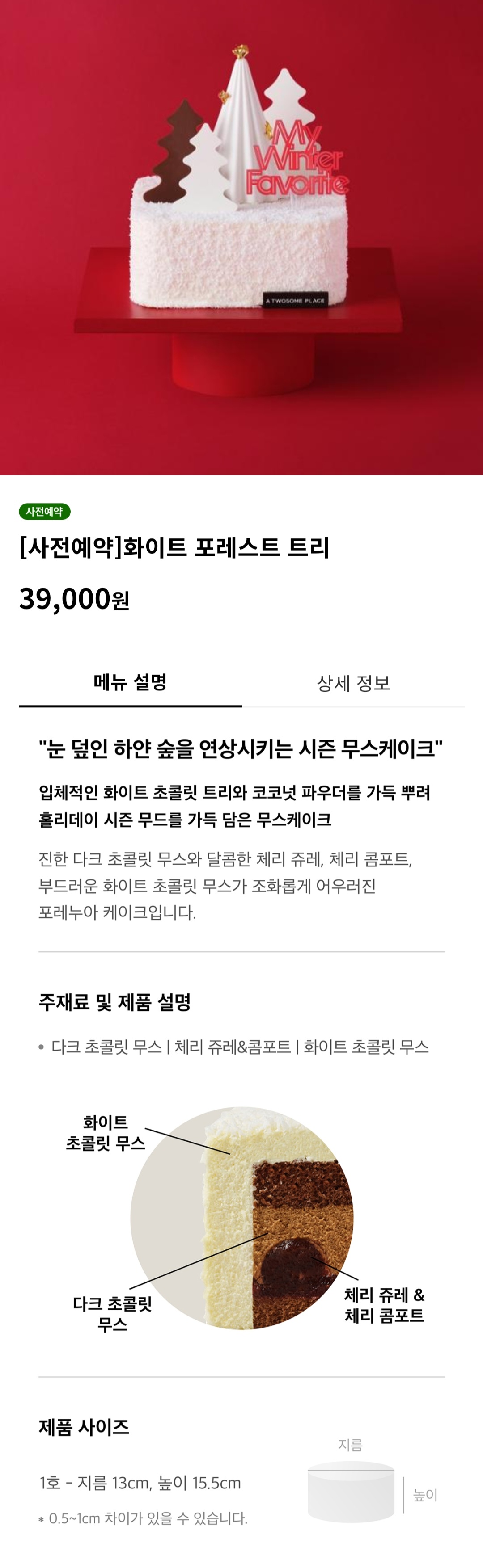 거기다 투썸플레이스는 크리스마스 홀케이크를