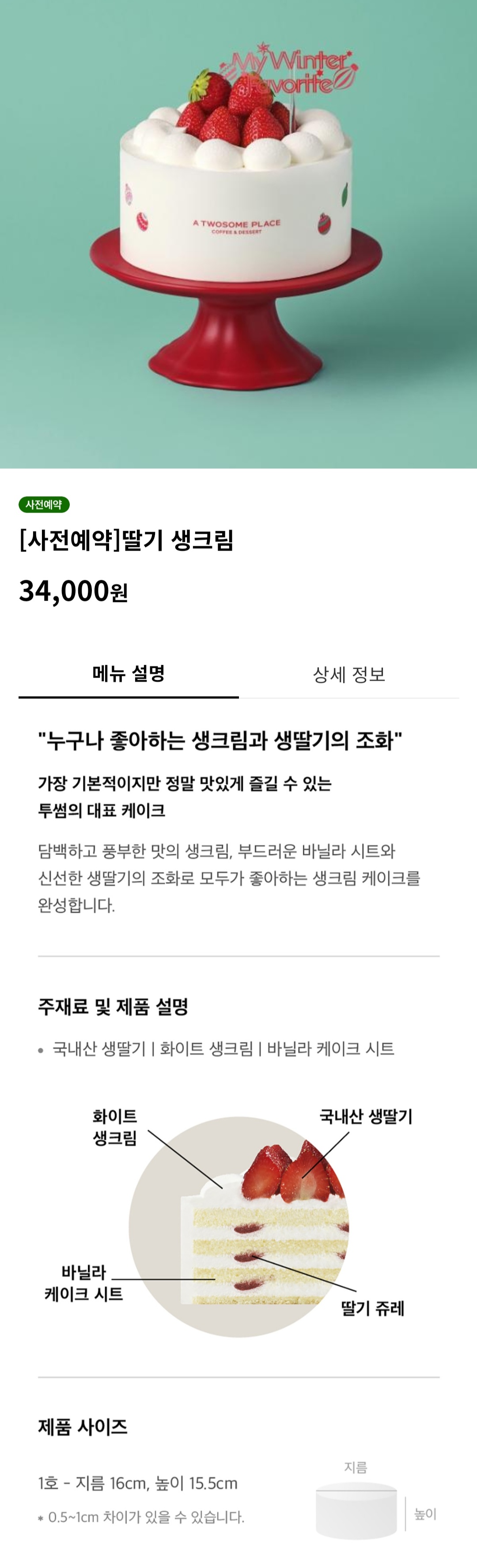 투썸플레이스 크리스마스 홀케이크 종류