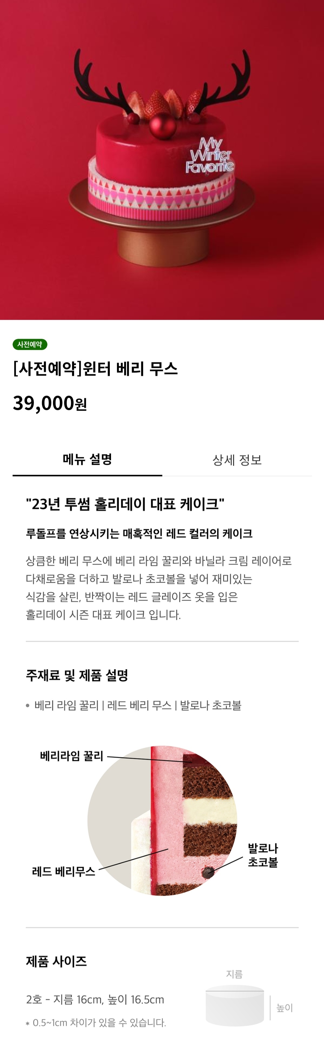 이번 투썸플레이스의 크리스마스 홀리데이 시즌 케이크는