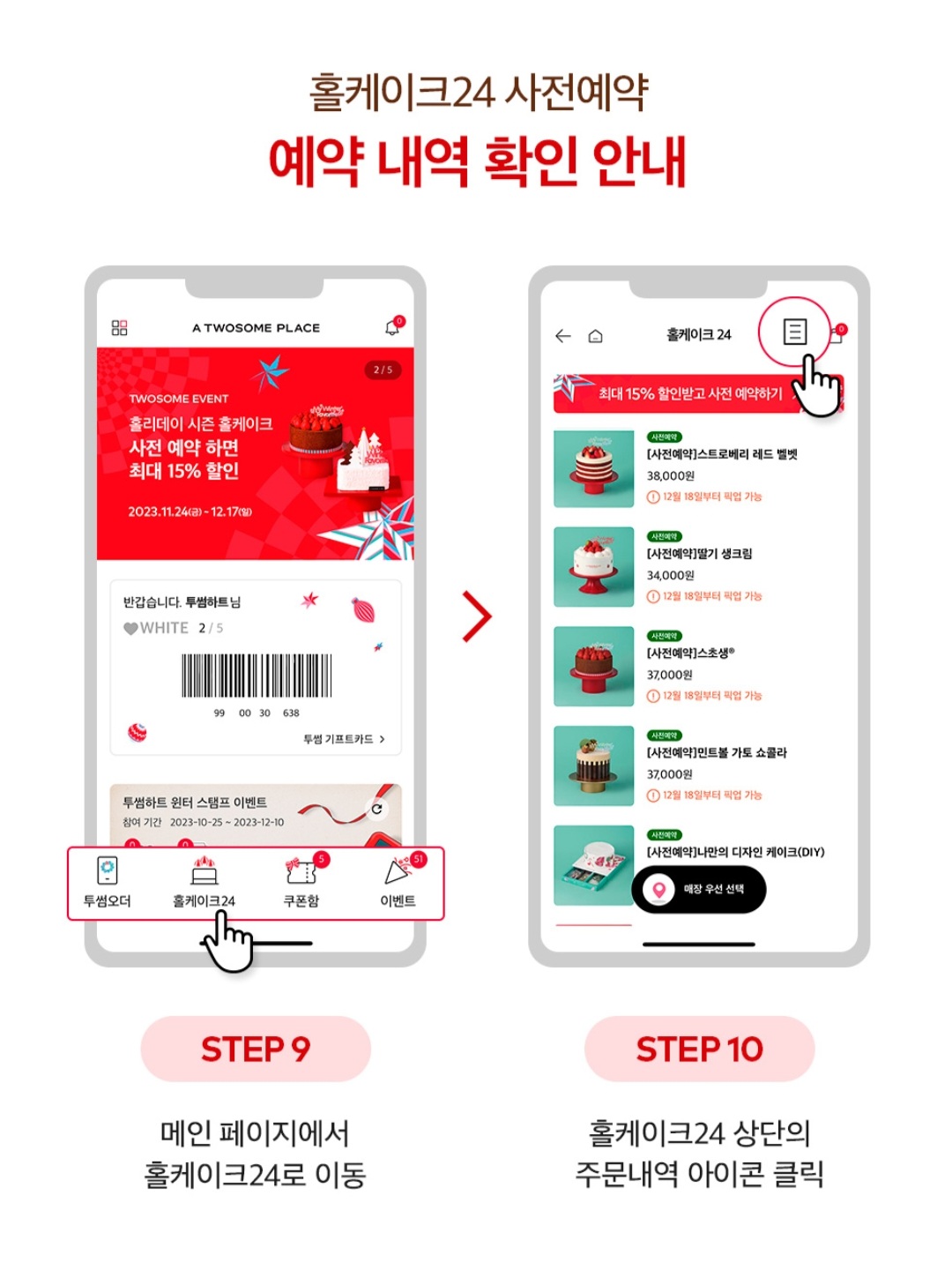 투썸플레이스 크리스마스 홀케이크 사전예약 내역 확인 방법